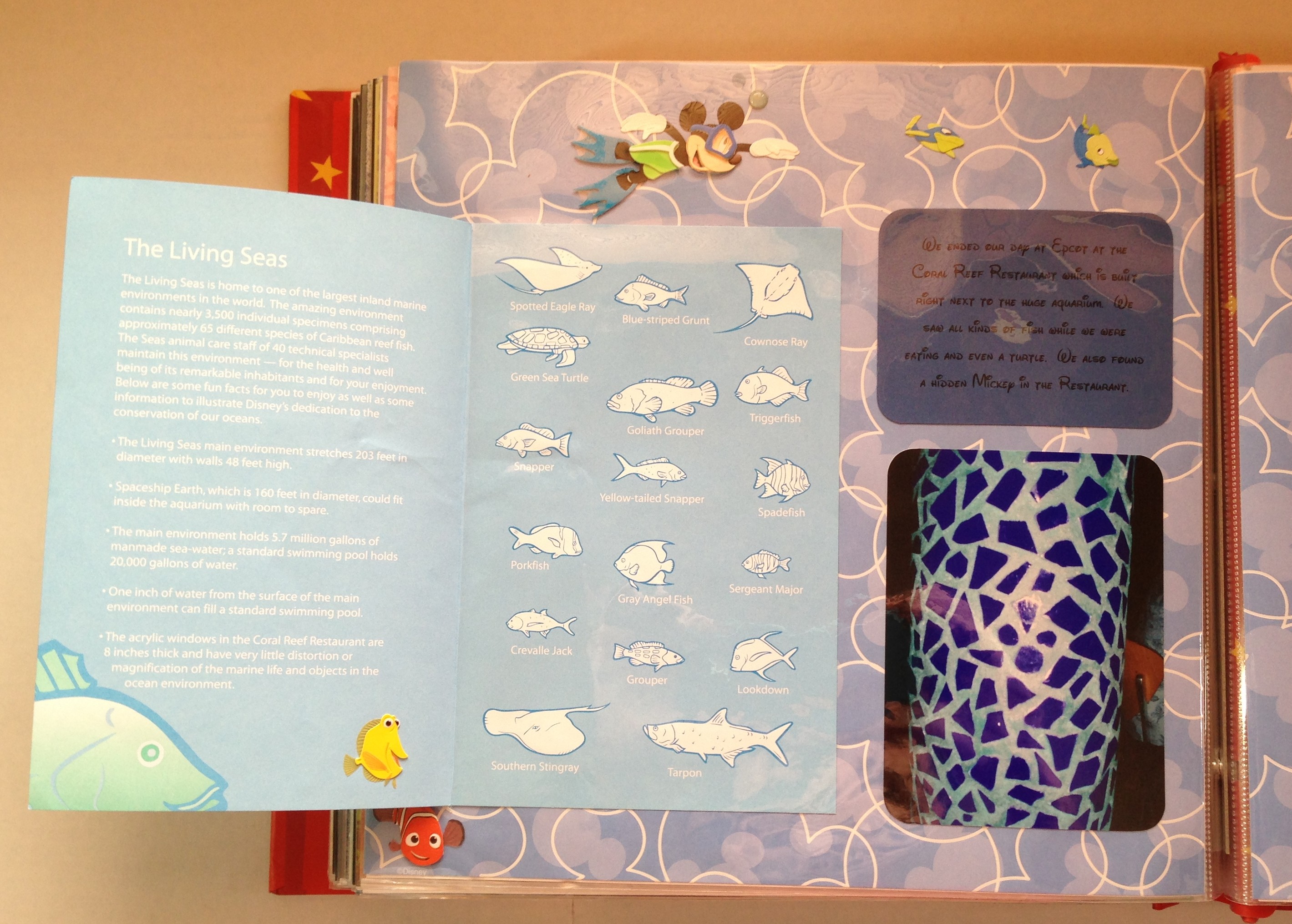 Notice the left hand side of the spread – it includes a “fish guide” that we were given so that we could identify all the fish that we saw.