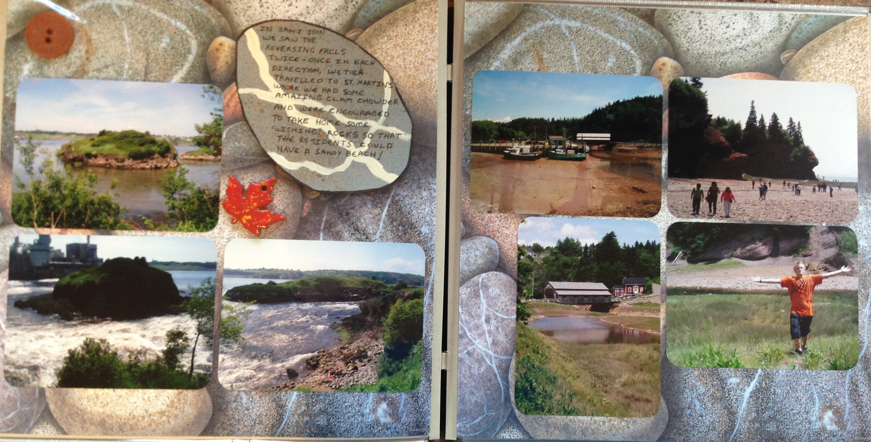 The two clay items (coin and leaf) we purchased at the Farmer’s market and they are made of clay from the Bay of Fundy. I like to collect items such as these to add to our memory books – they must be light weight, small, and thin.