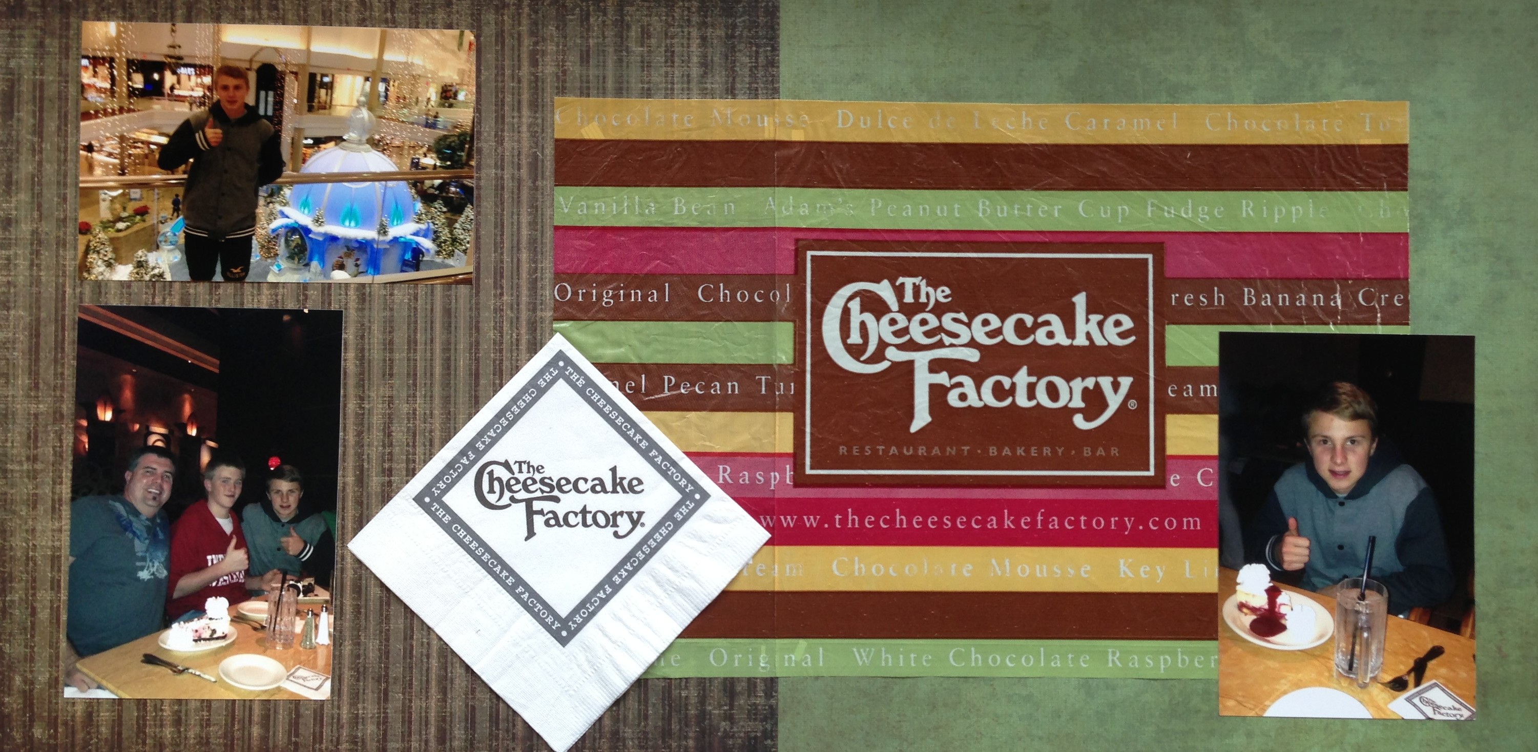 We wanted to take Jonathan up to Chicago for a weekend and we stayed in Schaumberg, Illinois. The first night we were there we were hungry so we stopped by Cheesecake factory for dessert.
