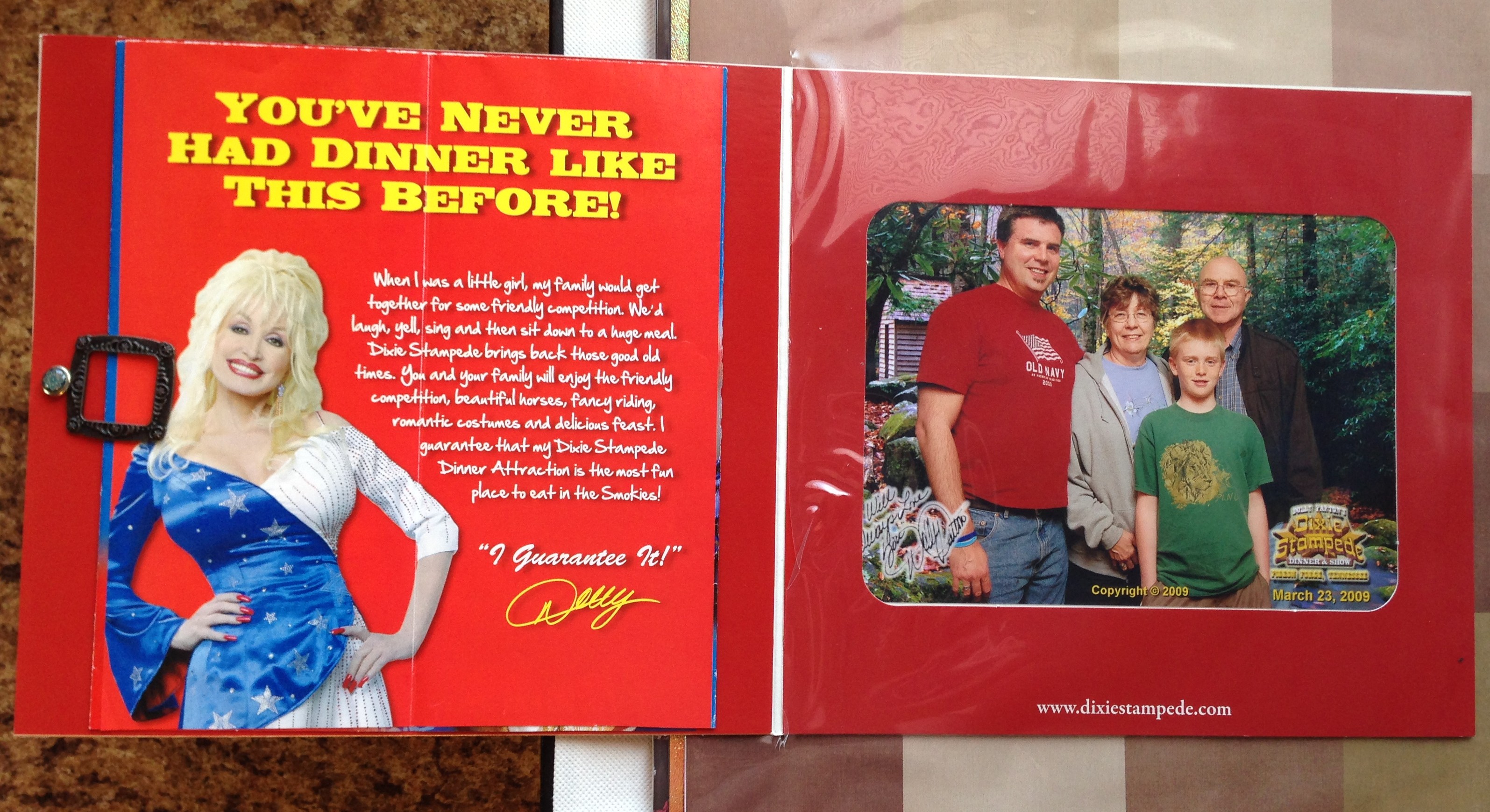 For Spring Break of 2009 we went with my parents to Gatlinburg and Pigeon Forge, TN. The first night that we were there we went and saw the Dixie Stampede, which is a must see show if you are in the area. It is a dinner theatre event within a horse arena – so you can imagine the fun that you will have.