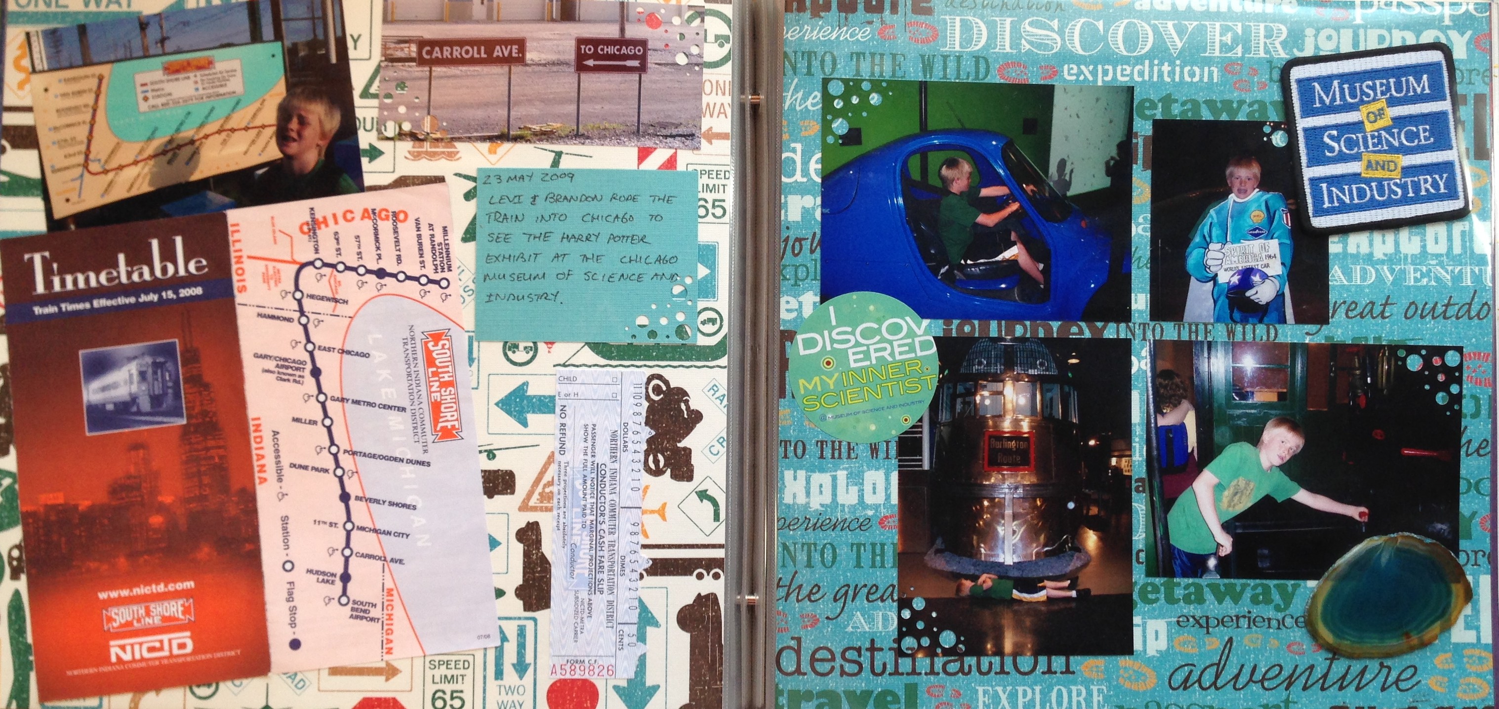 We drove to the train station and waited for the train and then had an adventurous ride to the museum. Since the train ride was a new experience for us I wanted to make sure that I had a page to scrapbook for this as well – which you can see on the left hand page.