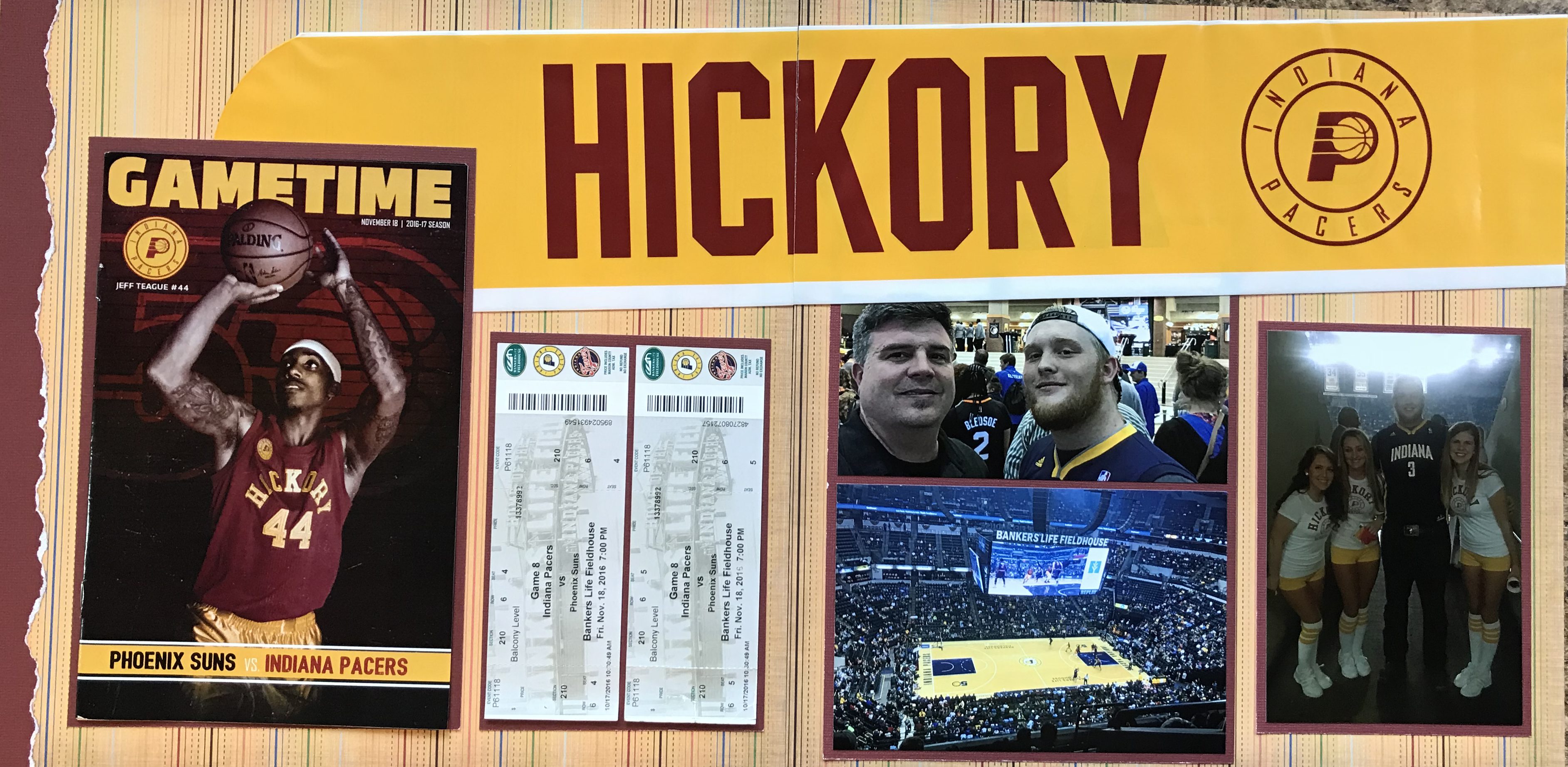 In November of 2016 we went to a “Hickory” night at Banker’s Fieldhouse for a Pacer’s game. At Half Time they honored the actors from the movie “Hoosiers“, so it was quite a fun night. The athletes and the cheerleaders wore throwback uniforms and all of the cheer gear was in maroon and yellow, instead of the Pacers Blue and Gold.