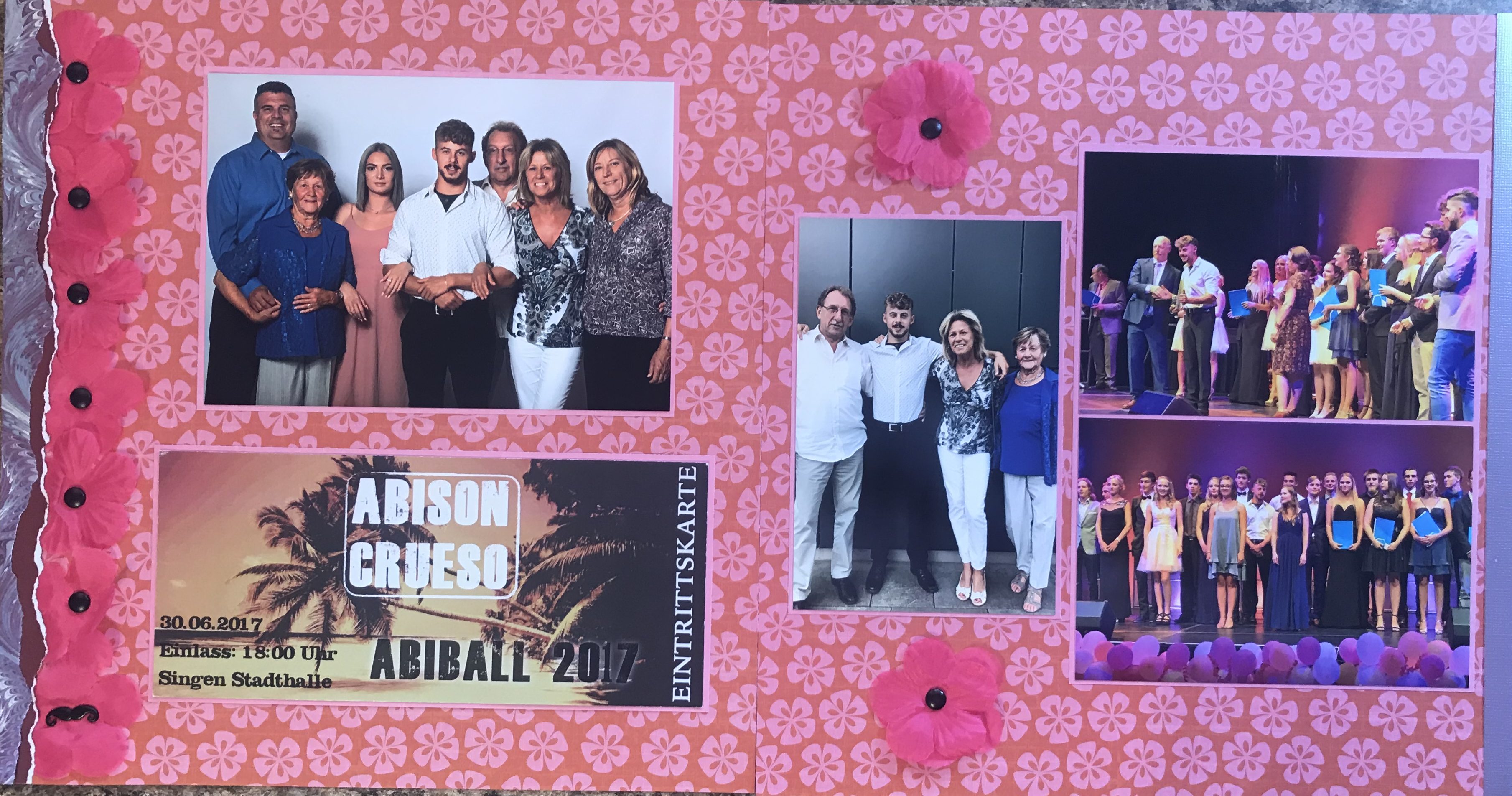 I chose a tropical theme for this spread, because the theme for the night was “Abison Crueso”, and the whole event was tropical themed. I thought that this was funny because I was excited about a “traditional” German graduation – and they picked a non-German theme for the event :).