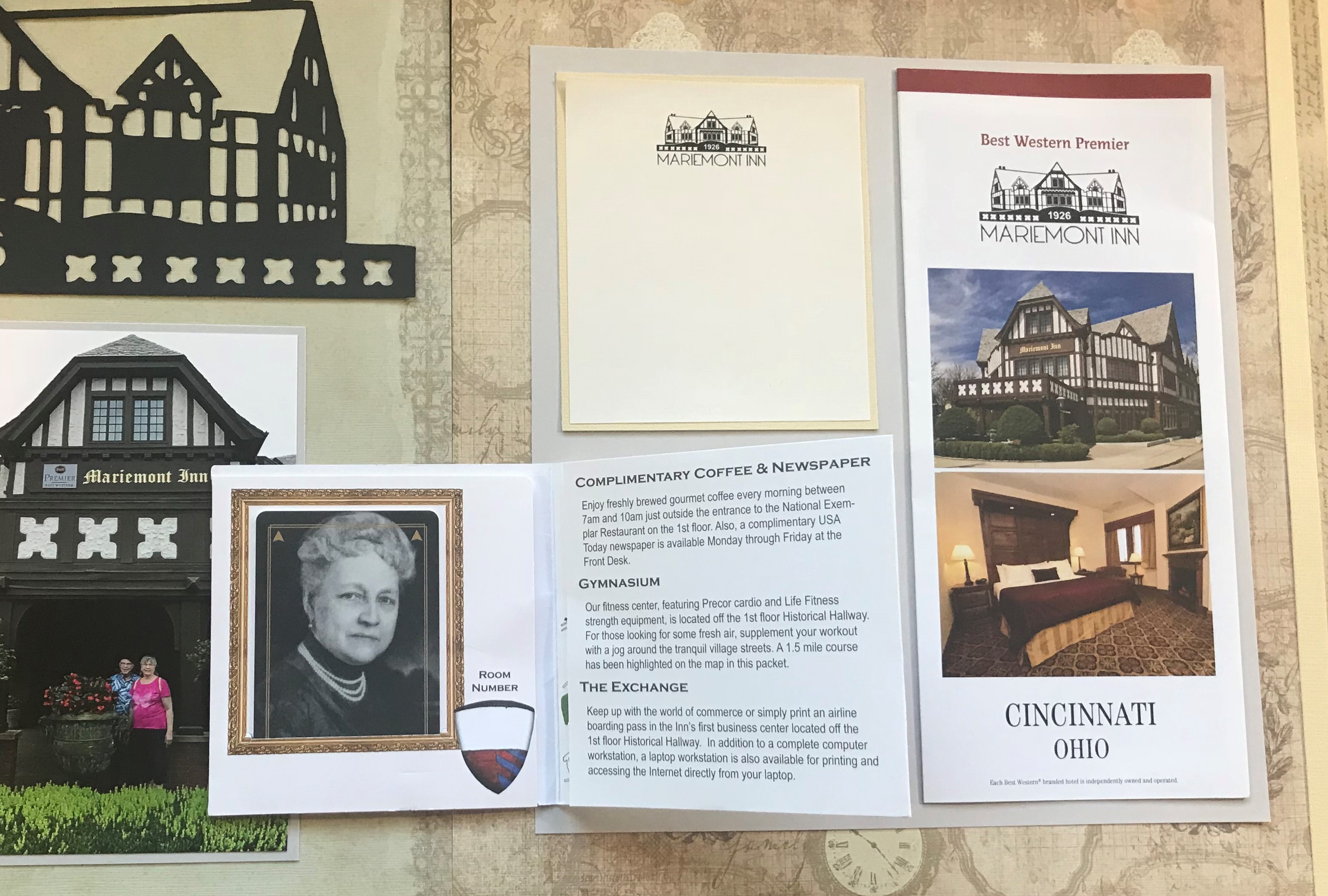 - The brochure from the hotel – which is attached to the outside of the plastic page protector so that it can be opened and viewed.