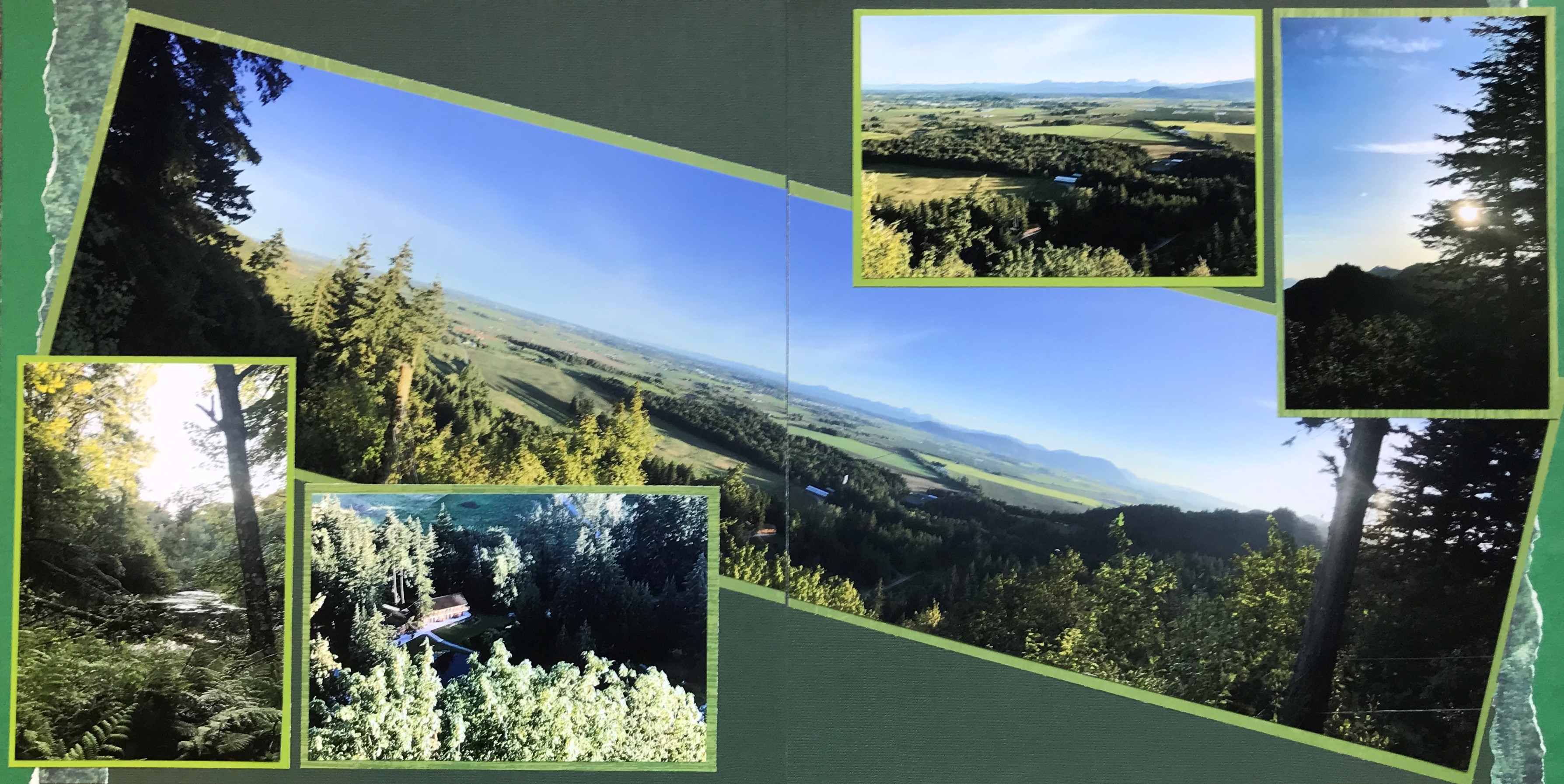 My Journey to Washington was to participate in a Leadership Development retreat at the Cedar Springs Christian Retreat Center. This Retreat Center is in a beautiful location in Northern Washington, just south of the Canadian border. In fact a few of the participants went on a run one day and apparently ended up in Canada! The Retreat Center has a beautiful pond and gardens and amazing walking paths to enjoy. So, like many of the adventures on this trip, I took a lot of pictures! I had originally planned for this to be a panoramic fold out spread, but I realized that I had the LAX one right before this, and the Seattle Space Needle one right after, and due to the way the pages work I could not put the three spreads in order. So instead I decided to make 3 double spreads to showcase this experience.