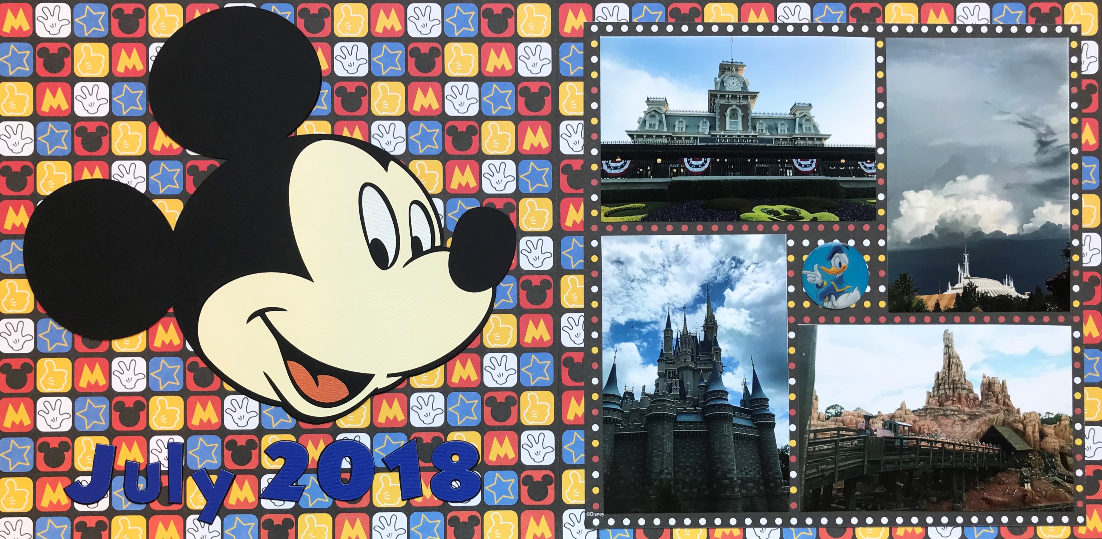 In July of 2018 I attended a work conference at Walt Disney World – isn’t that terrible? After the conference was over, a colleague and I stay an extra day so that we could take in the Magic Kingdom. I have been to the Magic Kingdom many times (2001, 2008, 2010, 2013) but it was fun to go with someone who had not been before. I made 5 spreads from this short trip which I will share over the next few days.