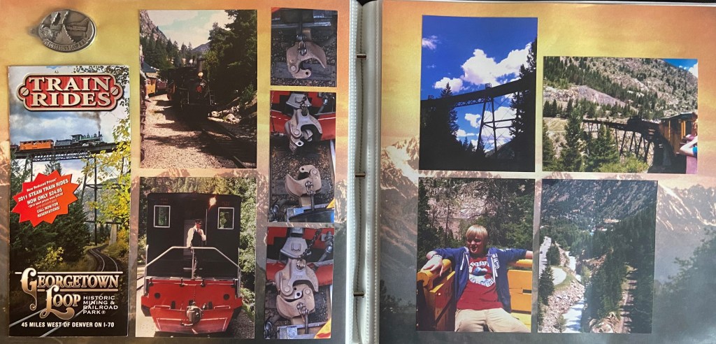The day after we went river rafting my son and I took a day trip on the Georgetown Loop Railroad. This trip is more than just a train ride as you will see on the next page – it is a full day experience. This spread through is dedicated to the parts of the day that we spent on the train!