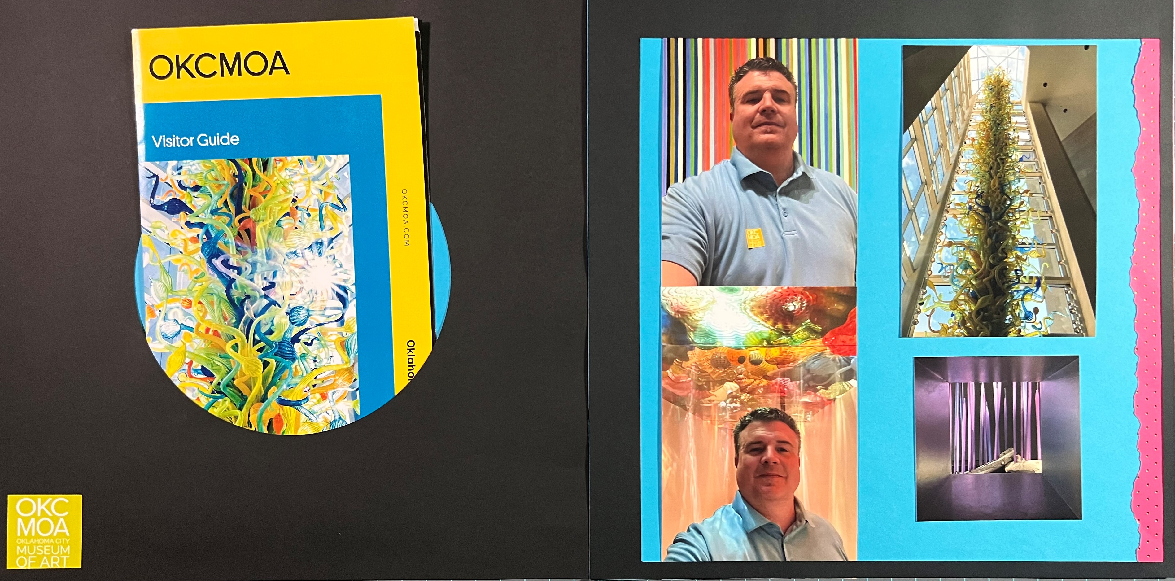 I had the opportunity to travel with our President’s Leadership Class to Oklahoma City for a weekend together, and one of our first activities was to visit the Oklahoma City Museum of Art (OKCMOA). One of my favorite artists, Dale Chihuly, has a large installation at the museum, and a signature piece can be seen in the top right-hand corner – a towering collection of hand-blown glass. I encourage you to visit each of these websites to learn more about them.