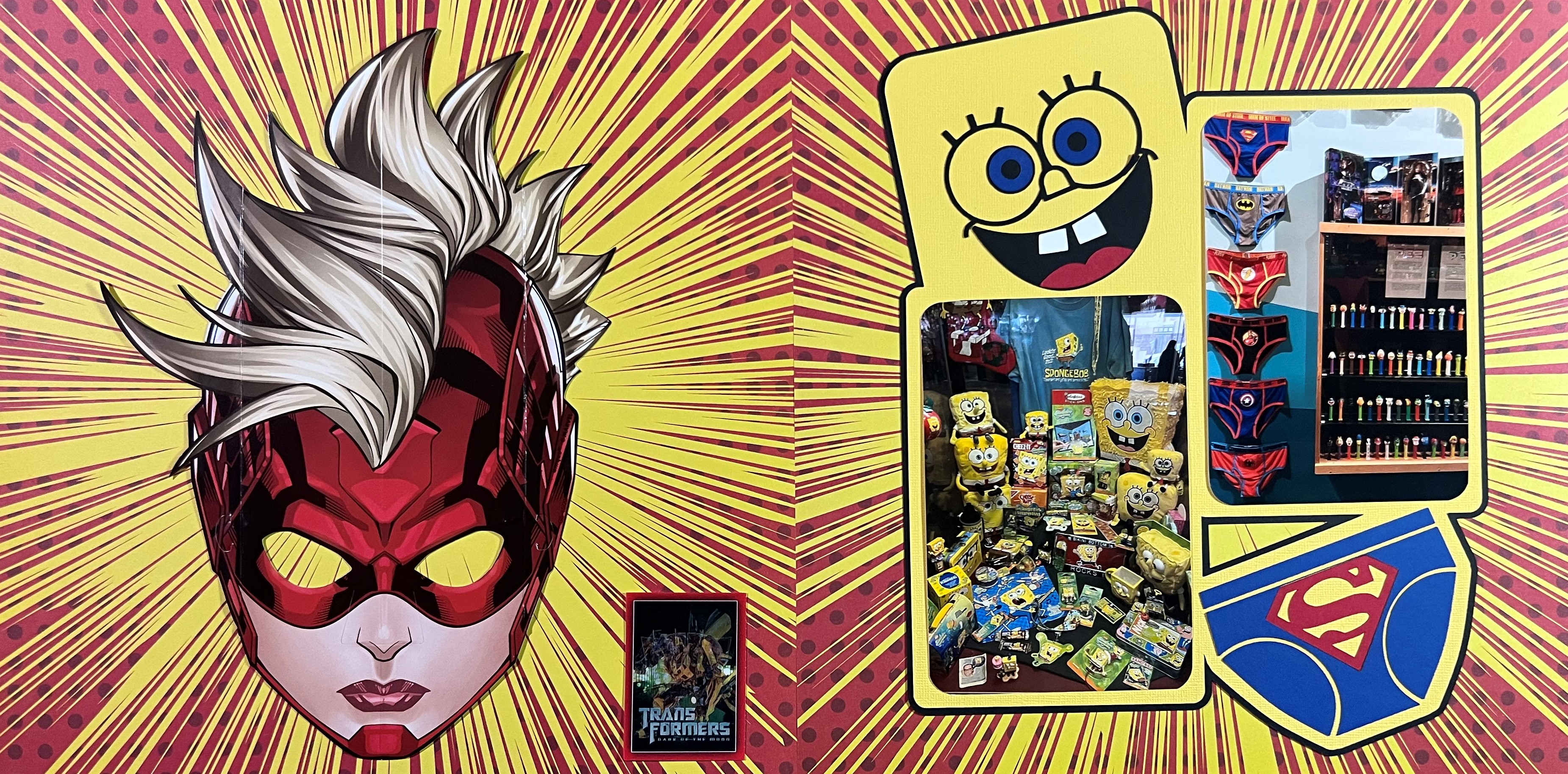 This is the second spread of visit to the Toy and Action Figure Museum in Pauls Valley, OK. This spread focuses on the SpongeBob SquarePants collection and a picture taken of superhero underwear and Pez dispensers. I had a lot of fun creating this spread.