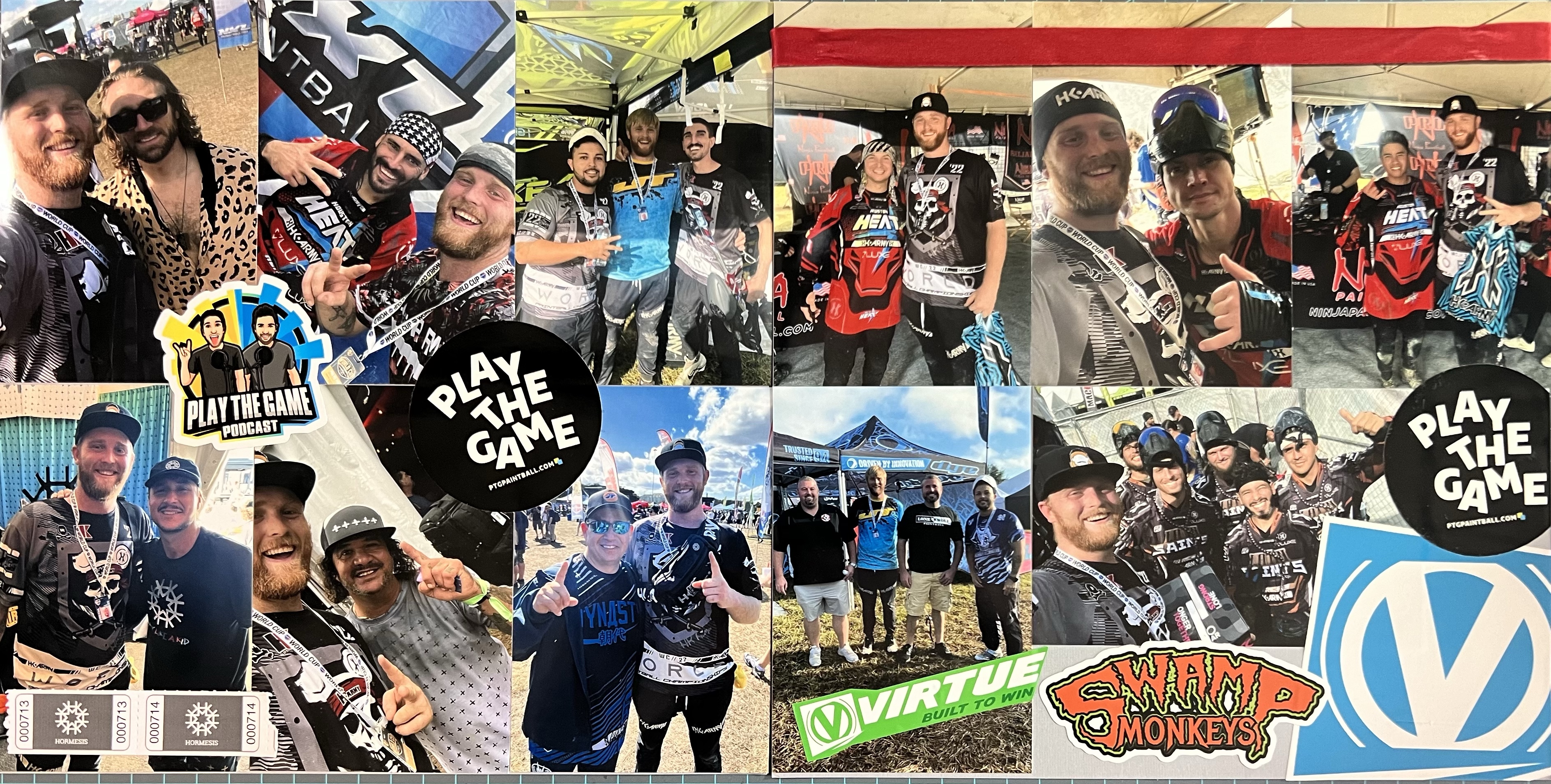 This is the third and final spread of the 2022 NXL Paintball World Cup from November 2022. There were so many pictures that I took that I decided to pick the best ones and to put them all on this page along with stickers that I picked up at the event. I thought that it would be fun to have the design of this page look like the sticker covered equipment cases that so many of the players have. So, it is very busy, but it does cause the viewer to slow down and look more carefully at the pictures. I am not sure who all of these people are – but my son told me that they are famous in the Paintball world – so I believe him! Do you recognize any of them?