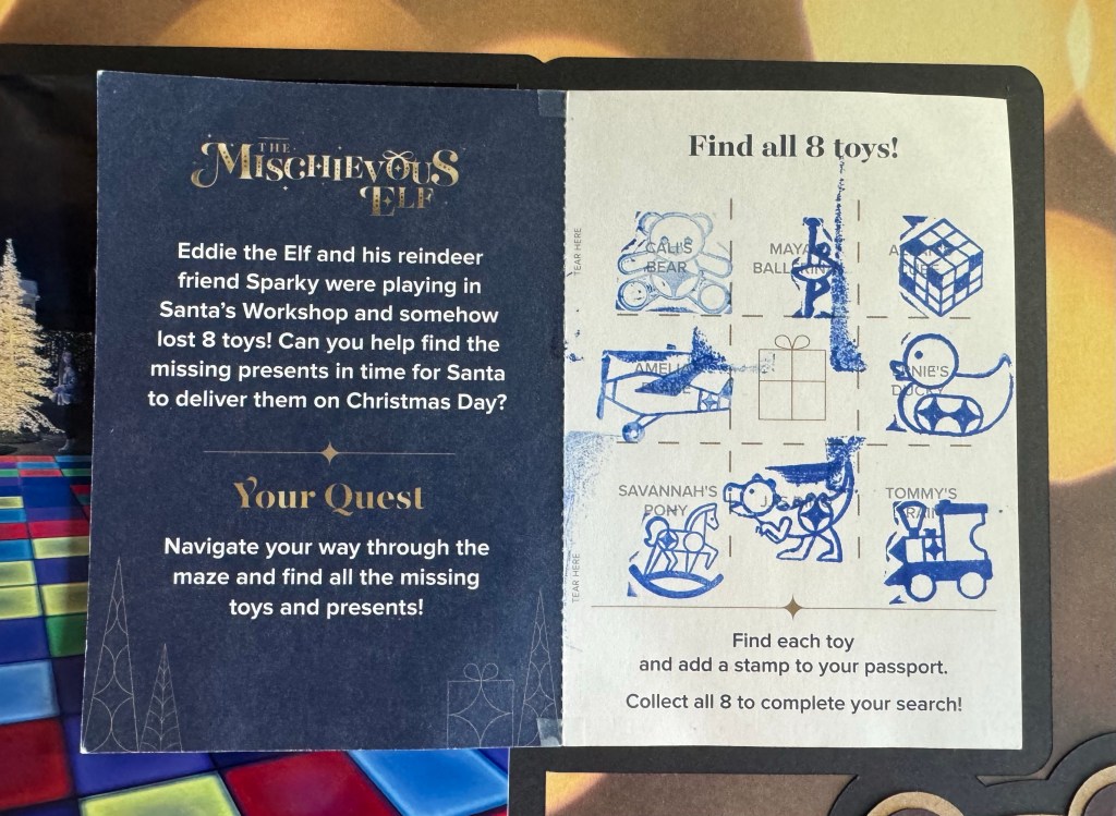 This is the second spread from my visit to Enchant in Dallas, TX in December 2022. When we entered the experience, we were handed passport books to collect stamps at the experience. There were 8 stamps in all, and we collected all of them!