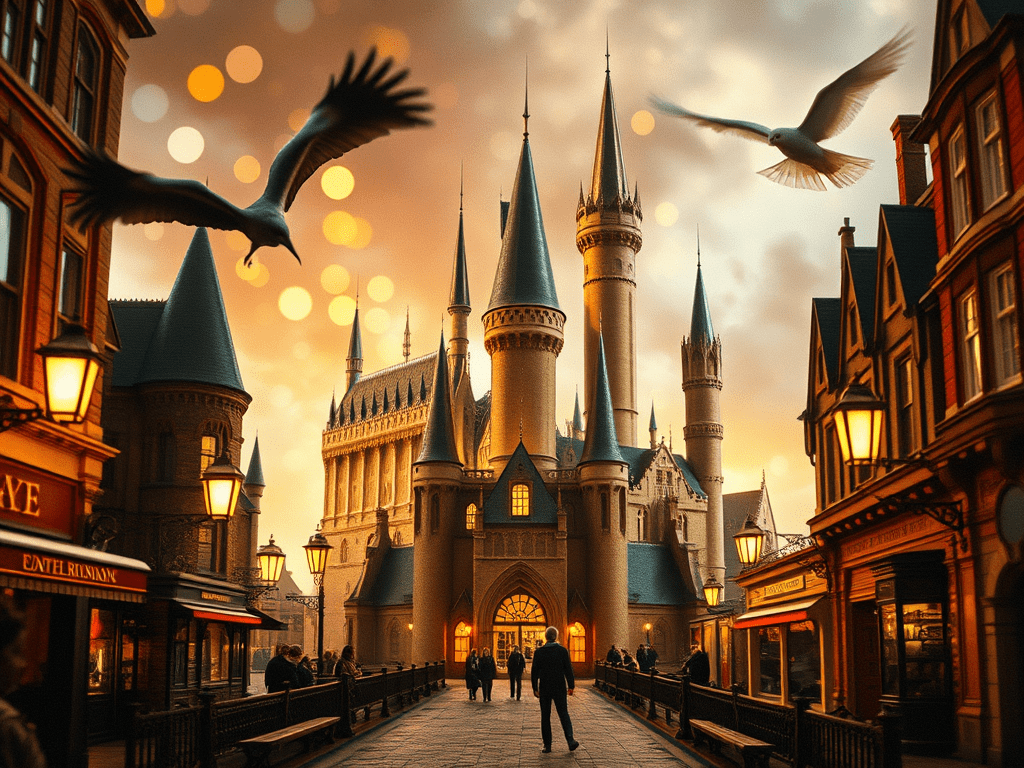 - Hogwarts Castle: Use architectural elements, gothic fonts, and stone textures to evoke the grandeur of the castle.