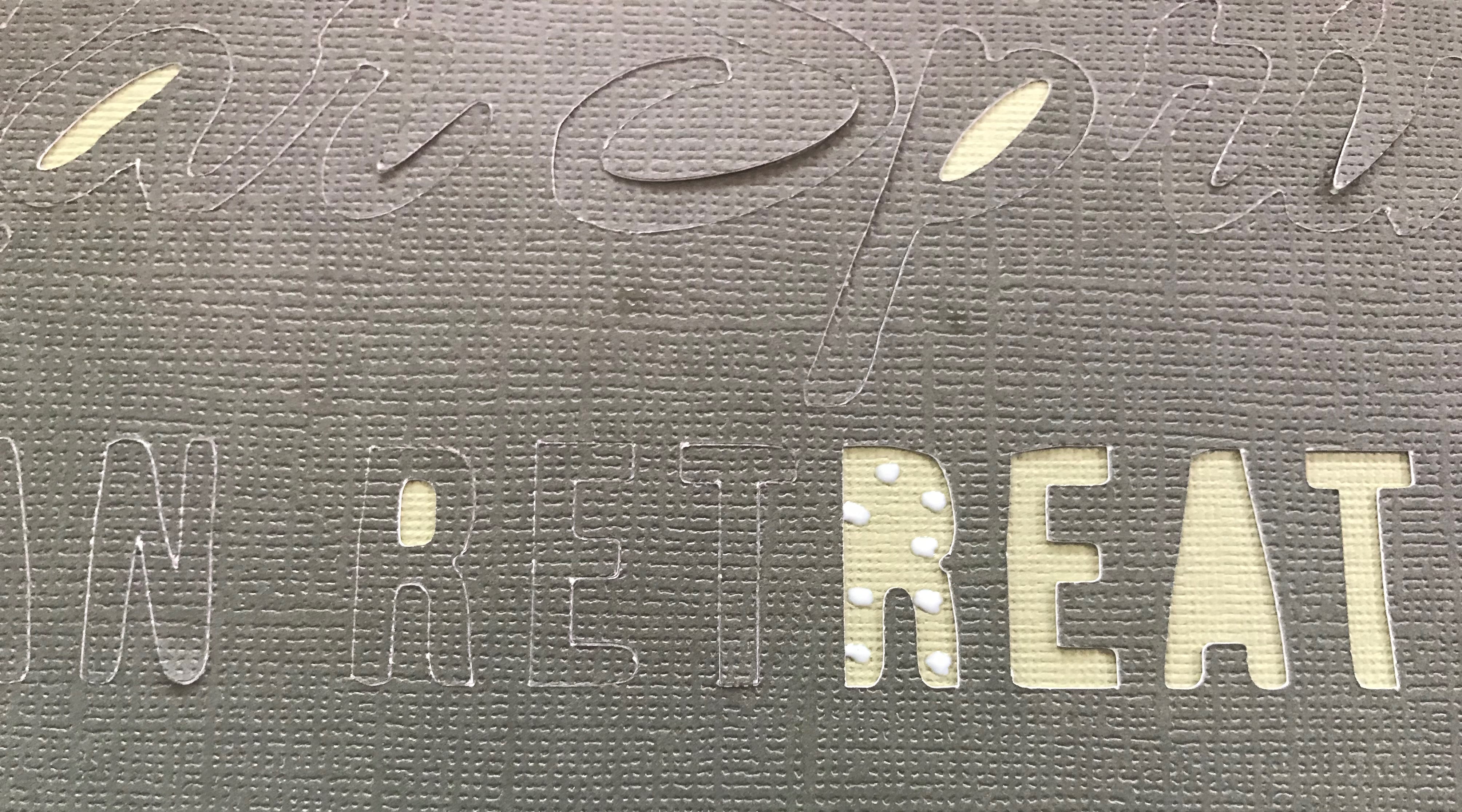 Step 4: Place smaller cutouts using a glue pen to put glue on the inside of the template directly onto the background page. Then take the cutout off of the cutting mat and place into the template on top of the glue. Press down firmly for about 1 second. I use the Cricut Accessory Tools to help place the very small cutouts.